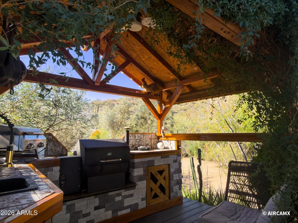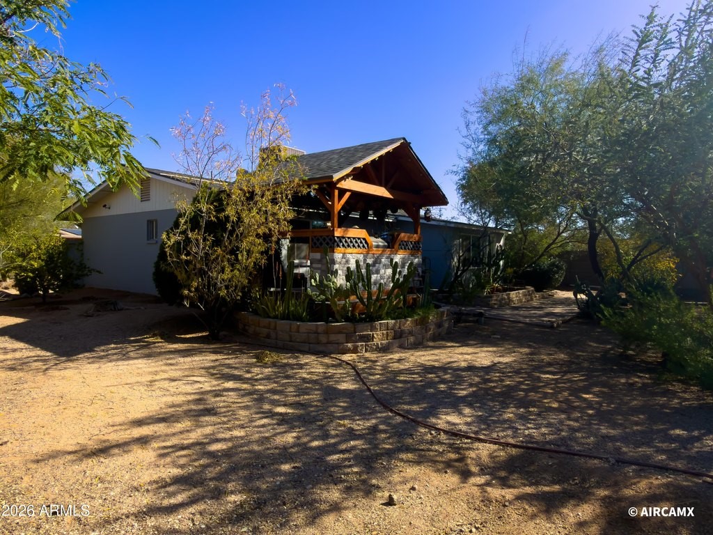 NESTLED IN A QUIET CUL-DE-SAC, THIS AMAZING HOME IS SURROUNDED BY NATURAL BEAUTY ALLOWING FOR PEACE AND TRANQUILITY. FULL REMODEL IN JANUARY 2021, NEW VINAL WATERPROOF FLOORING FROM FLOOR AND DECOR. NEW CARPET IN BOTH BEDROOMS, PAINT INSIDE AND OUTSIDE. REMOVED OLD HVAC, INSTALLED NEW UNIT, AND NEW VENTING. NEW SHINGLE ROOF, UPGRADED GARAGE CEILING WITH 2X2 WOOD PLANKS. 18 INCHES OF NEW INSULATION ADDED. NEW DOUBLE PANE WINDOWS WITH GAS. FULL KITCHEN REMODEL! NEW CABINETS GOING TO THE CEILING WITH CROWN MOLDING. UPGRATED RANGE HOOD, PLUMBED IN POT FILER ABOVE STOVE, NEW APPLIANCES 2021 BLACK STAINLESS STEEL. GREYISH BLACK GRANITIE COUNTERTOPS. CUSTOM MOUNTED EPOXY WOOD GRAIN KITCHEN TABLE AND CHAIRS THAT ARE INCLUDED. MADE IN 2023 CUSTOME BARN DOORS TO BEDROOM AND ARIZONA ROOM. OUTDOOR, KITCHEN PAVILLION BUILT IN 2021-2022, INCLUDES 120 SQ FEET, SMOKER, BBQ GRILL, SINK AND OUTDOOR REFRIGERATOR. NEW MASTER BATH AND NEW TUB AND TILE IN OTHER BATH. RETAINING WALL OUTFRONT INSTALLED IN 2003. THIS HOME WILL NOT DISAPPOINT! MOUNTAIN VIEWS, CLOSE TO THE 202, SALT RIVER, CANYON AND SAGUARO LAKES. THERE IS ALSO ACCCESS TO THE BROWN MOUNTAIN HIKING TRAIL, WITH UNOBSTRUCTED VIEWS OF THE MOUNTAIN. GREAT MOUNTIAN VIEWS. SHADE IN THE SUMMER AT 5 AS THE MOUNTIAN PROTECTS YOU FOR 2 HOURS BEFORE THE SUN GOES DOWN. WHAT A TIMELESS, RARE, IMPECCABLE AND REMARKABLE PROPERTY. NO HOA, PAVERS BY DESIGN IN FRONT.
